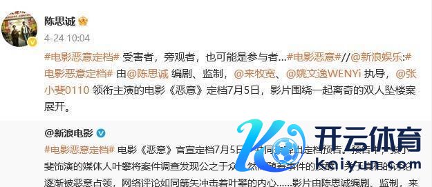 本年暑期档上映的《坏心》,由陈想诚将担任编剧和监制,张小斐、黄轩主演。