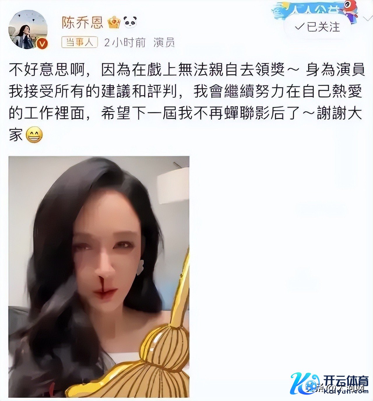 上一届得回最令东说念主失望的女演员奖项的陈乔恩曾经发文报酬,安谧摄取这一奖项。