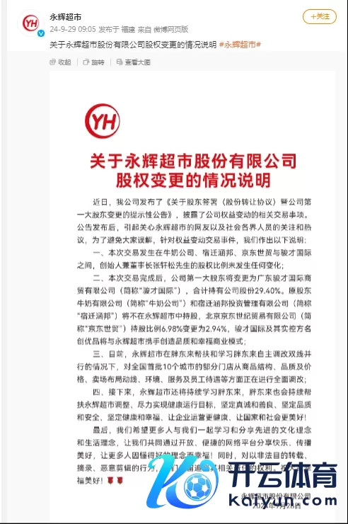 永辉超市在公告中指出,独创东说念主兼董事长张轩松的股权比例未发生任何变化,并强调公司将延续学习胖东来的诡计口头,胖东来也将延续提供帮扶,以完毕健康运转目标。