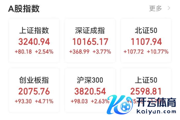 顺序收盘,沪指涨2.54%报3240.94点;深成指涨3.77%报10165.17点;创业板指涨4.71%报2075.76点;北证50指数涨10.77%报1107.94点。