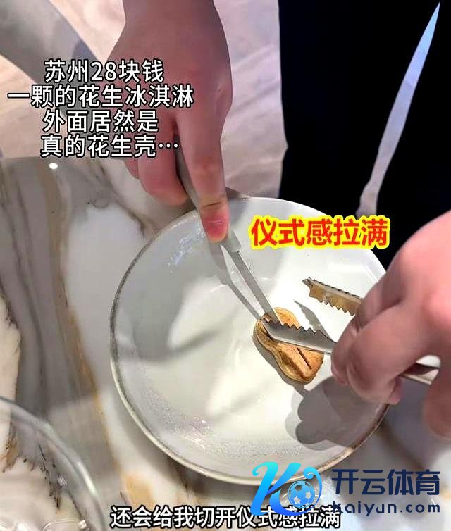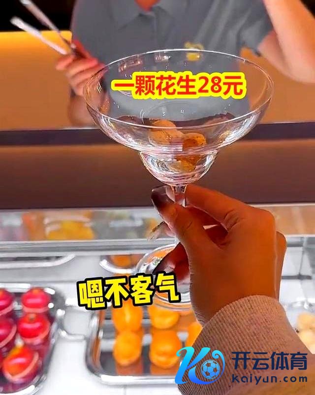 伙计还煞有介事地给她挑了个“大”花生,放在高脚杯里,用刀和夹子切开,典礼感满满。