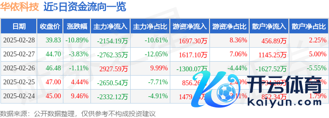 本站音尘欧洲杯体育,末端2025年2月28日收盘,华依科技(688071)报收于39.83元,着落10.89%,换手率5.75%,成交量4.88万手,成交额2.03亿元。