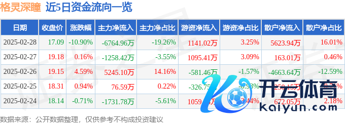 本站音信,限度2025年2月28日收盘,格灵深瞳(688207)报收于17.09元,下落10.9%,换手率11.03%,成交量19.7万手开yun体育网,成交额3.51亿元。