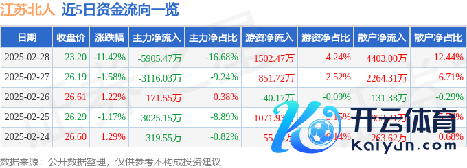 本站音信,截止2025年2月28日收盘,江苏北东谈主(688218)报收于23.2元,下落11.42%,换手率12.41%开云体育,成交量14.72万手,成交额3.54亿元。