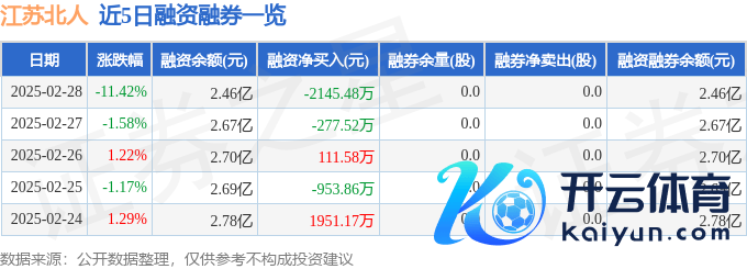 江苏北东谈主融资融券信息显现,融资方面,当日融资买入4689.64万元,融资偿还6835.12万元,融资净偿还2145.48万元。融券方面,融券卖出0.0股,融券偿还0.0股,融券余量0.0股,融券余额0.0万元。融资融券余额2.46亿元。