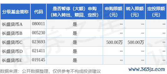 本站音信欧洲杯体育,8月8日长盛基金措置有限公司发布《长盛货币市集基金部分销售机构治愈大额申购、退换转入、按时定额投资业务名额的公告》。公告中辅导,为保护基金份额握有东说念主的利益,保险基金镇定运作,自2025年8月8日起长盛货币市集基金部分销售机构治愈大额申购、退换转入、按时定额投资业务名额,申购、退换转入上限金额为500.0万元,下属分级基金治愈明细如下: