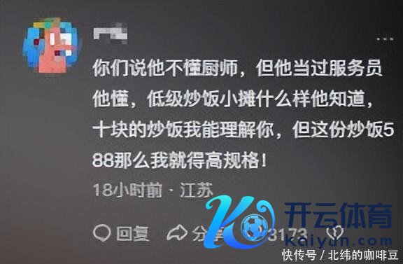 行动又名厨师,作念完饭打扫卫生,这是顺遂的事情,而且这亦然厨艺中的一部分。 更有网友评价,要是这炒饭卖十元也就辨别,但要是售价五百八十八元,那就得按照更高的表率来判定。