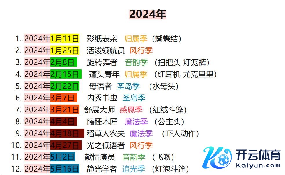 黑金大氅,红狐狸欧洲杯体育,谈袍,削弱日浴者,熊抱雪东谈主,白棉裤,傻笑稚子军 ,迎宾侍者,花瓣大氅,彩纸表亲,蓬头后生,水母头,内秀书虫,打盹儿木工,稻草东谈主农夫,飞吻,灯泡大氅。