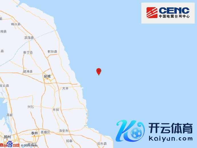 江苏盐城市大丰区海域发生3.4级地震 震源深度12公里江苏盐城市大丰区海域发生3.4级地震 震源深度12公里