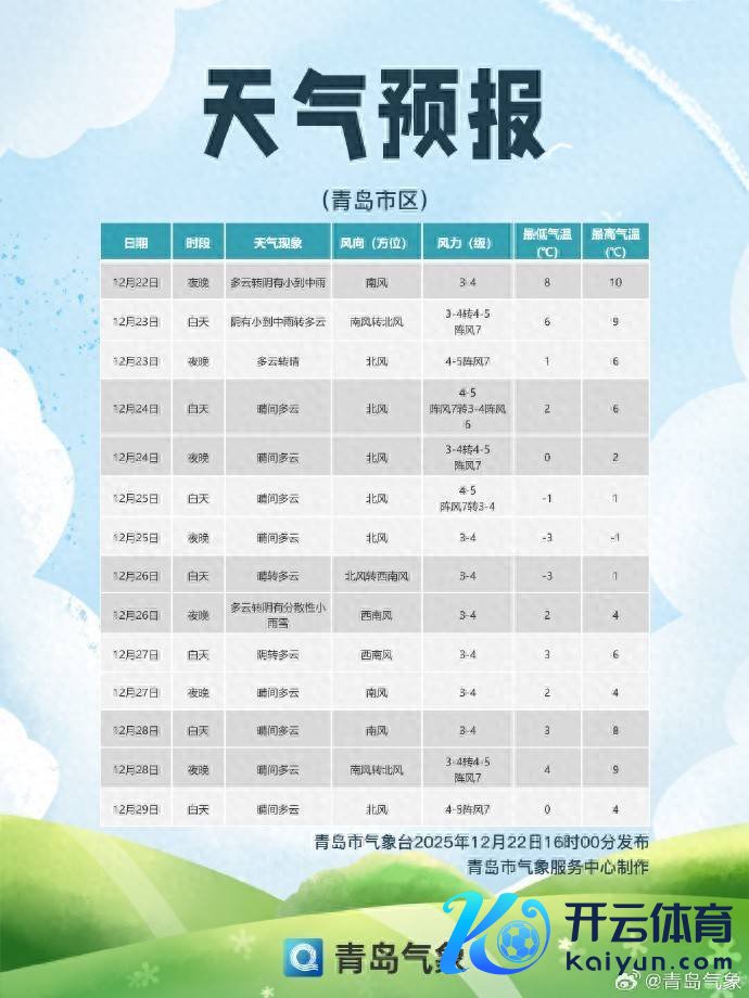 信网12月23日讯 据@青岛餍足音讯,23日上昼,青岛全市领域有小到中雨,早岑岭时段降雨较为汇注,请提前备好雨具,防御出行安全。23日下昼降雨渐渐截止,风力开动增大,气温渐渐下跌。24日日间,天气放晴,青岛全市最高气温在5~7℃之间,展望25日清晨天气阴凉,沿海一带最低气温在-1~-4℃之间,内陆地区最低气温在-5℃阁下。
