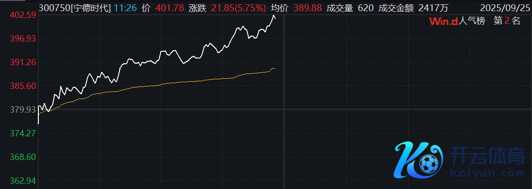 A股宁德时间股价冲破400元关隘A股宁德时间股价冲破400元关隘
