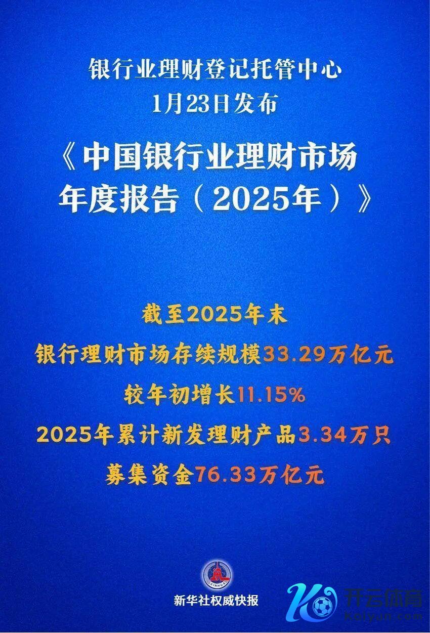 1月23日,银行业搭理登记托管中心发布《中国银行业搭理市集年度叙述(2025年)》。说明叙述开云体育,为止2025年末,银行搭理市集存续范围33.29万亿元,较年头增长11.15%。