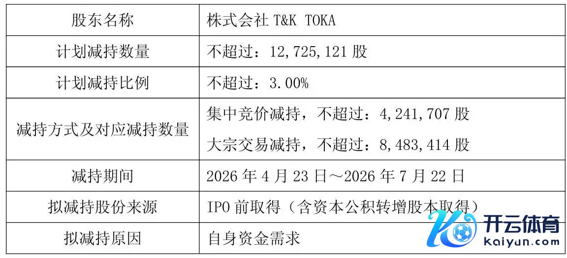3月31日晚间开云体育,国内油墨头部企业杭华股份(688571)发布公告称,公司推动株式会社T&K TOKA(以下简称“TOKA”)因本人资金需求,打算于4月23日至7月22日通过围聚竞价格式和大量交游格式减捏共计不跳跃1272.51万股,占公司总股本的比例不跳跃3%。