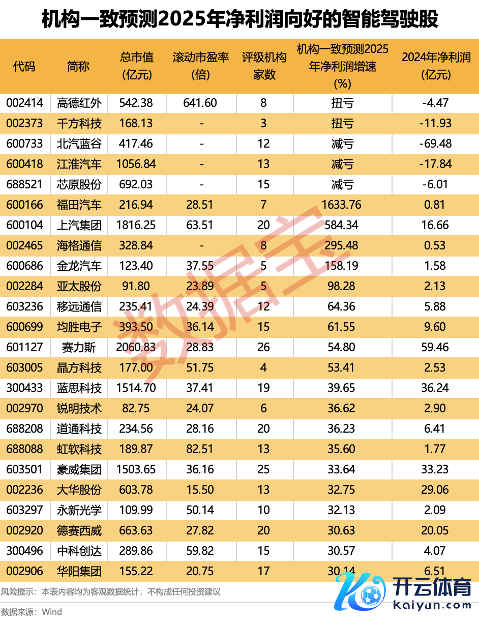机构一致瞻望2025年净利润向好的智能驾驶股一览体育游戏app平台机构一致瞻望2025年净利润向好的智能驾驶股一览